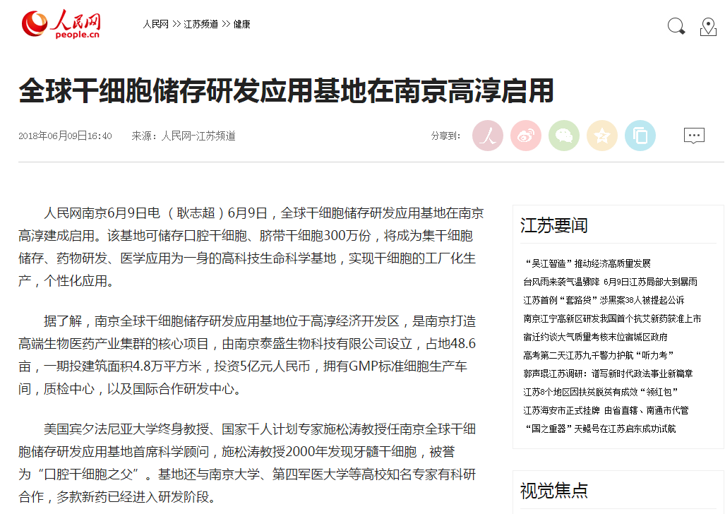 6月9日,全球干細(xì)胞儲(chǔ)存研發(fā)應(yīng)用基地在南京高淳建成啟用。該基地可儲(chǔ)存口腔干細(xì)胞、臍帶干細(xì)胞300萬(wàn)份,將成為集干細(xì)胞儲(chǔ)存、藥物…