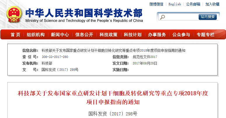 國(guó)科發(fā)資〔2017〕298號(hào)附件1“干細(xì)胞及轉(zhuǎn)化研究”試點(diǎn)專項(xiàng)2018年度項(xiàng)目申報(bào)指南為取得干細(xì)胞及轉(zhuǎn)化研究的原創(chuàng)性突破和推動(dòng)轉(zhuǎn)化應(yīng)用,整體提升我國(guó)再生醫(yī)學(xué)領(lǐng)域水平,根據(jù)《國(guó)家中長(zhǎng)期科技發(fā)展規(guī)劃綱要(2006-2020年)》部署和《國(guó)務(wù)院關(guān)于深化中央財(cái)政科技計(jì)劃…